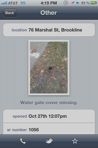 Wrong location. Missing water gate cover is on Beacon St. between St. Paul and Kent Streets. (Case 1057)