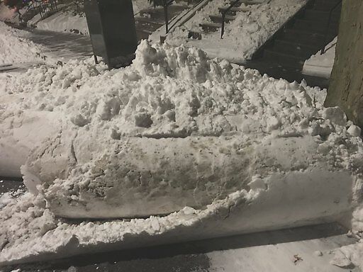Plow pushed snow on street into a big pile That will block Trash recycling pickup location for 20 and 24 Claflin rd