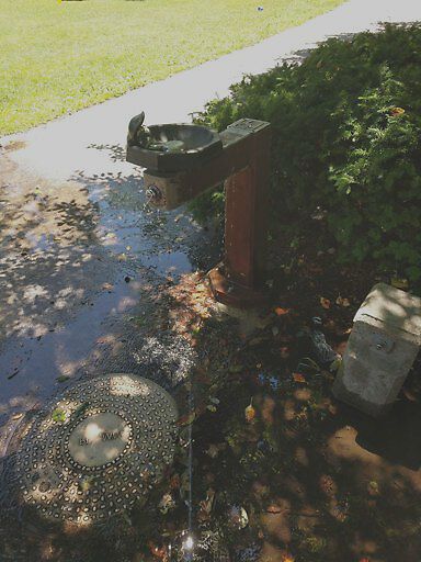 Water fountain broken and continually leaking.