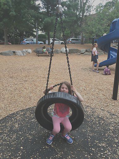 Broken tire swing on Lawrence playground.