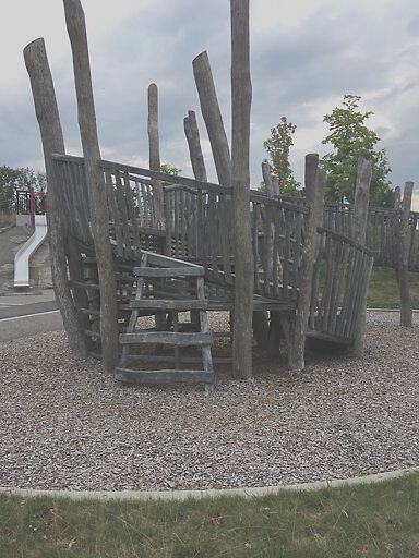 Wooden structure covered in bees. Not safe for children to play on or near, also for adults.