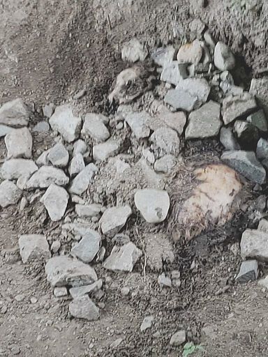 Dead animal "buried" behind tree facing beacon st in dean park, fourth tree from trashcans