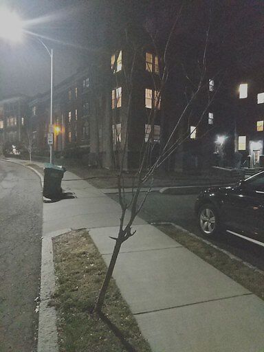 Tree died last year, no leaves throughout 2018, is now tilting. It is the last of a patch of three trees at the James with Beacon intersection.