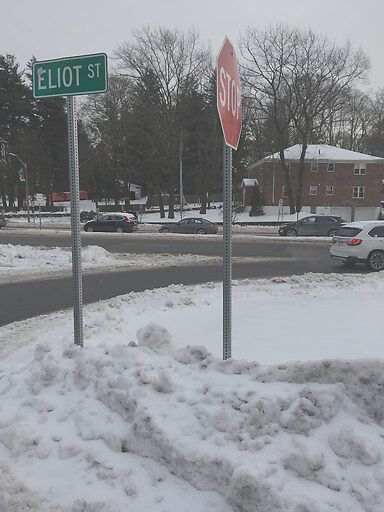 Unshoveled/Icy Sidewalk at 2–10 Eliot St, Chestnut Hill