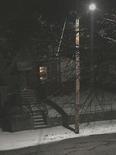 Tree branches over Bonad Road are pushing on overhead wires. Branches need trimming before snow adds more weight to the branches.