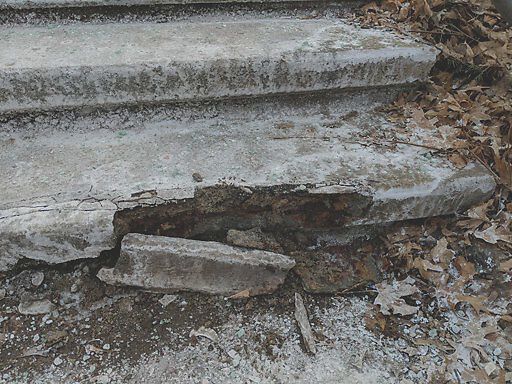A stair on Winchester Path has rotten concrete. It's at the fourth landing down from the top.