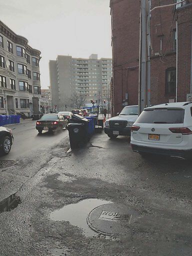 Truck + trash = 2 foot passage to squeeze through.