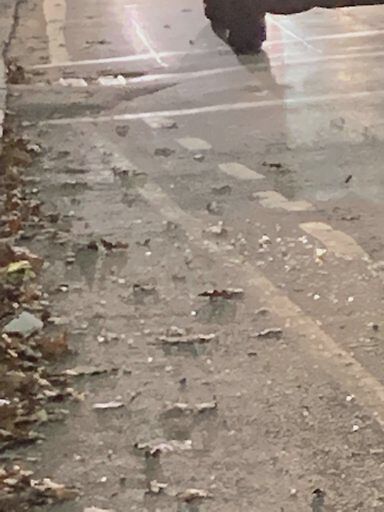 Broken glass in bike lane