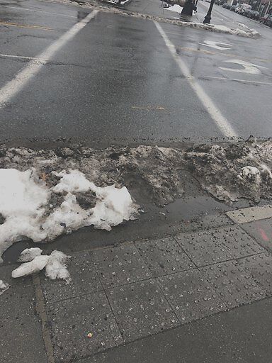 This is at the intersection of Washington and bacon in the middle… This is where children class and both sides are plowed in… Perhaps there should be someone who comes out during storms just to make sure walkways are clear especially at crosswalks