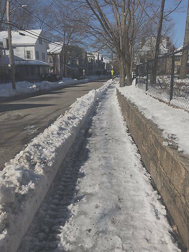 Why is a town owned sidewalk solid ice while the road next to it is bone dry? Not good enough! Davis Ave along Emerson Garden.