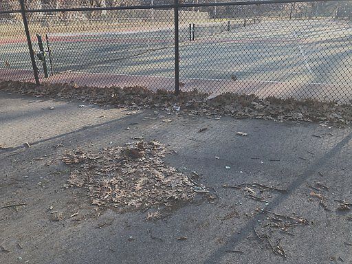 It's hard to see if the photo but there are some broken bottles on the ground here outside the tennis courts. I picked up the bigger pieces but I don't have a broom handy. A cleanup would be appreciated, thanks.
