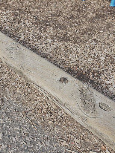 Big nail poking out of the wood, easy for a kid to fall and get hurt