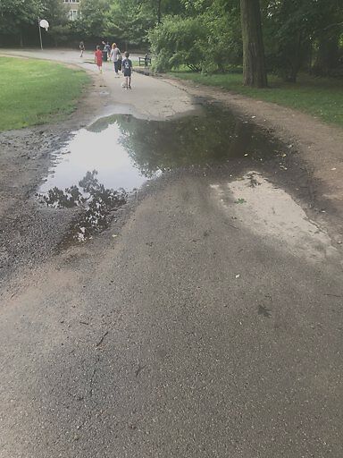 This is the never ending puddle kids can run or bike around the Lawrence pathway.