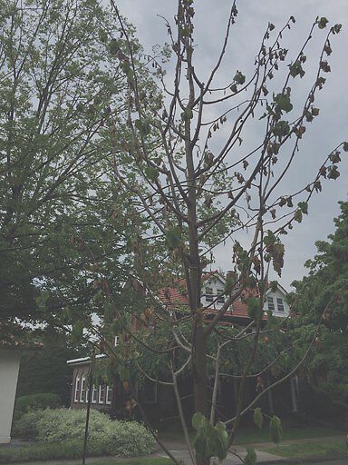 Newly planted tree looking stressed.