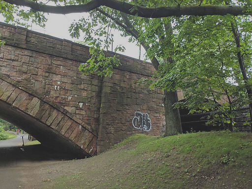 On wall in Muddy river park
