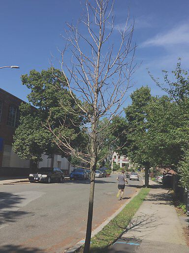 Dead tree opposite Bay Cove Academy on Lawton St.