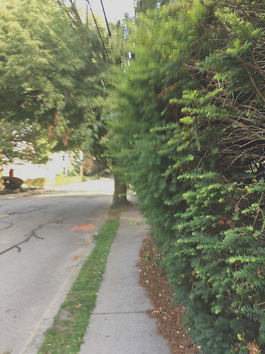 Hedge on Kent at Beech blocks sidewalk