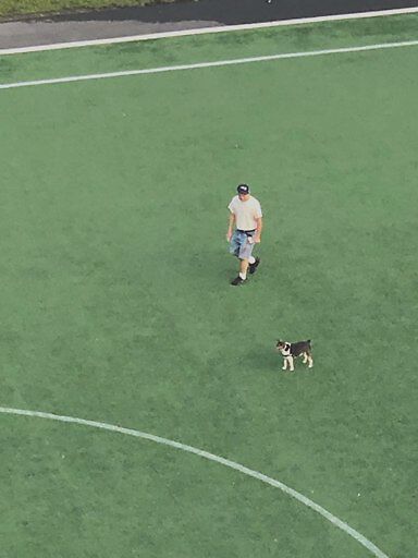 Dog owners continue to disregard the 'posted signs' NO DOGS ON THE COOLIDGE CORNER SCHOOL artificial turf.