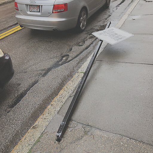 Damaged Sign at 10 A Davis Ave